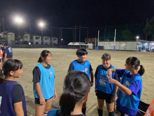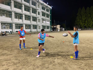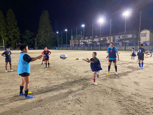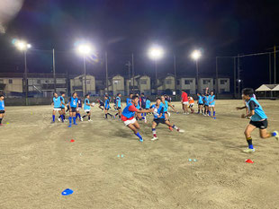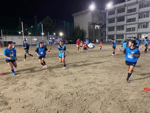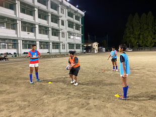 初心者の参加者も、徐々にではありますが、パスが上達してきています。また、自主的に活動開始前からパス練習を行うなど、積極的な姿勢が顕著に見られるようになってきました。まさに「好きこそ、ものの上手なれ」ということわざがぴったり当てはまる場面であると感じます。少しずつラグビーらしい動きや雰囲気が出てきており、個人や班ごとの競争要素を取り入れたことで、ゲーム感覚を持って楽しみながら取り組む姿勢が育まれています。悔しい思いを経験する中で、次に向けた工夫や方法を自ら考え、作戦タイムを設けることで、自発的に取り組む様子が見られるようになりました。さらに、仲間との協同作業の一環として、短時間ではありますが会話の機会を数回設けることで、男子・女子、初心者・経験者、中学生・小学生といった区別を自然と超えて、仲間意識がより強くなってきていると感じられます。