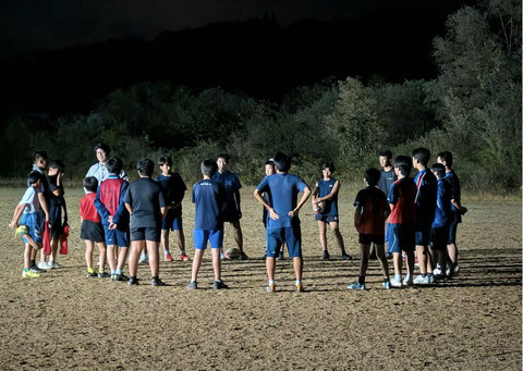 7回目の練習テーマは「サポート&フォロー」を行いました。最初のミーティングでは全体のテーマである「自分で考える能力を身につけよう」を再確認し、第1回目からこれまでの振り返りを行ってから、ウォーミングアップを開始しました。