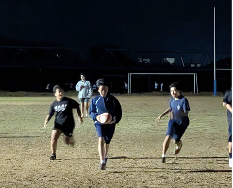 最後のタッチフットでは、アタック回数を7回までとし、タッチされたら必ずサポートプレイヤーが一人入ることをルールに設定。前回のキックも取り入れながら行いました。サポートプレイヤーが入ることで展開が少し遅くなり、トライを取るのが難しかったようですが、より実践に近い状態でゲームができ、自分たちで「どうすればスペースを作れるか」を考えながらプレーできていたようです。